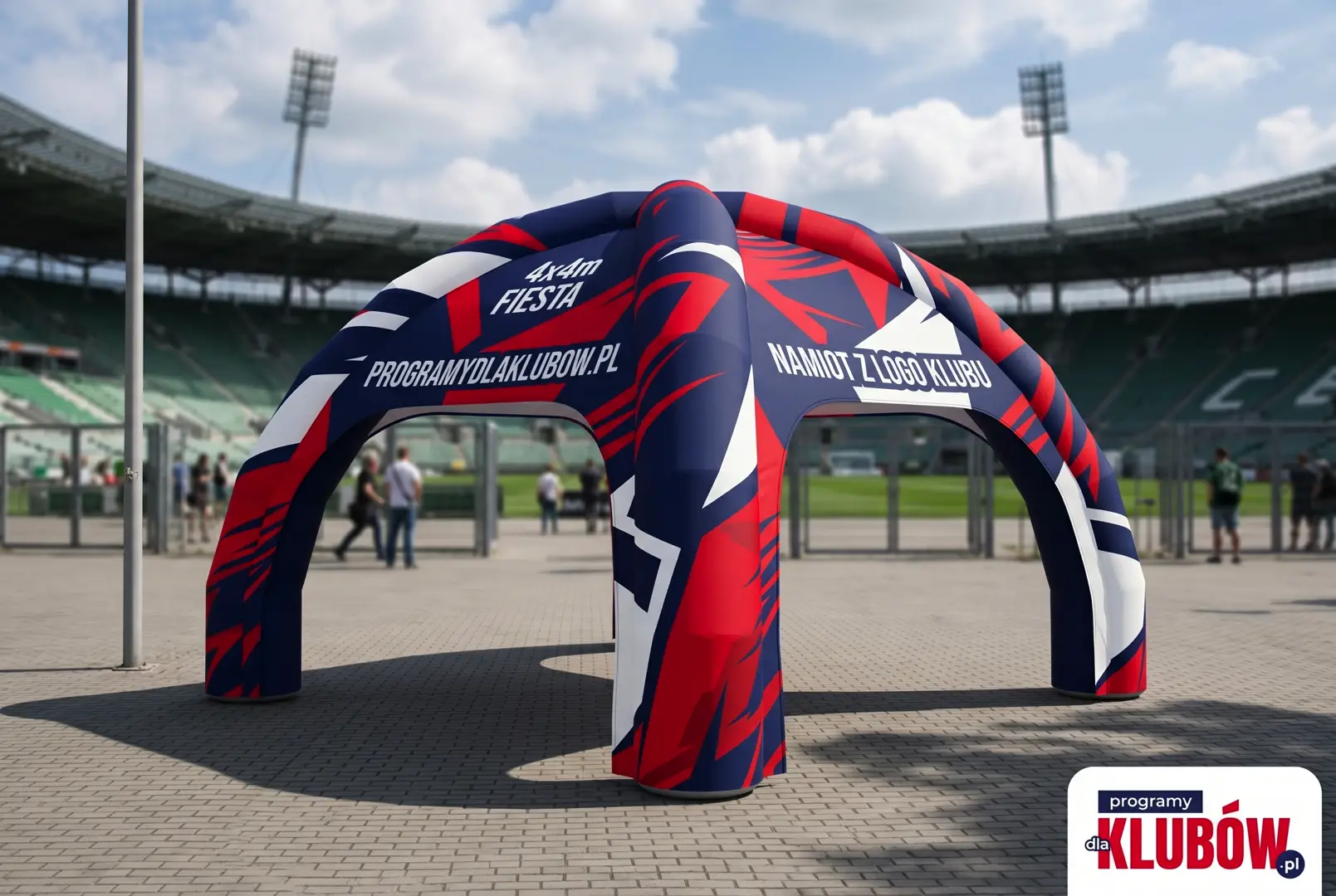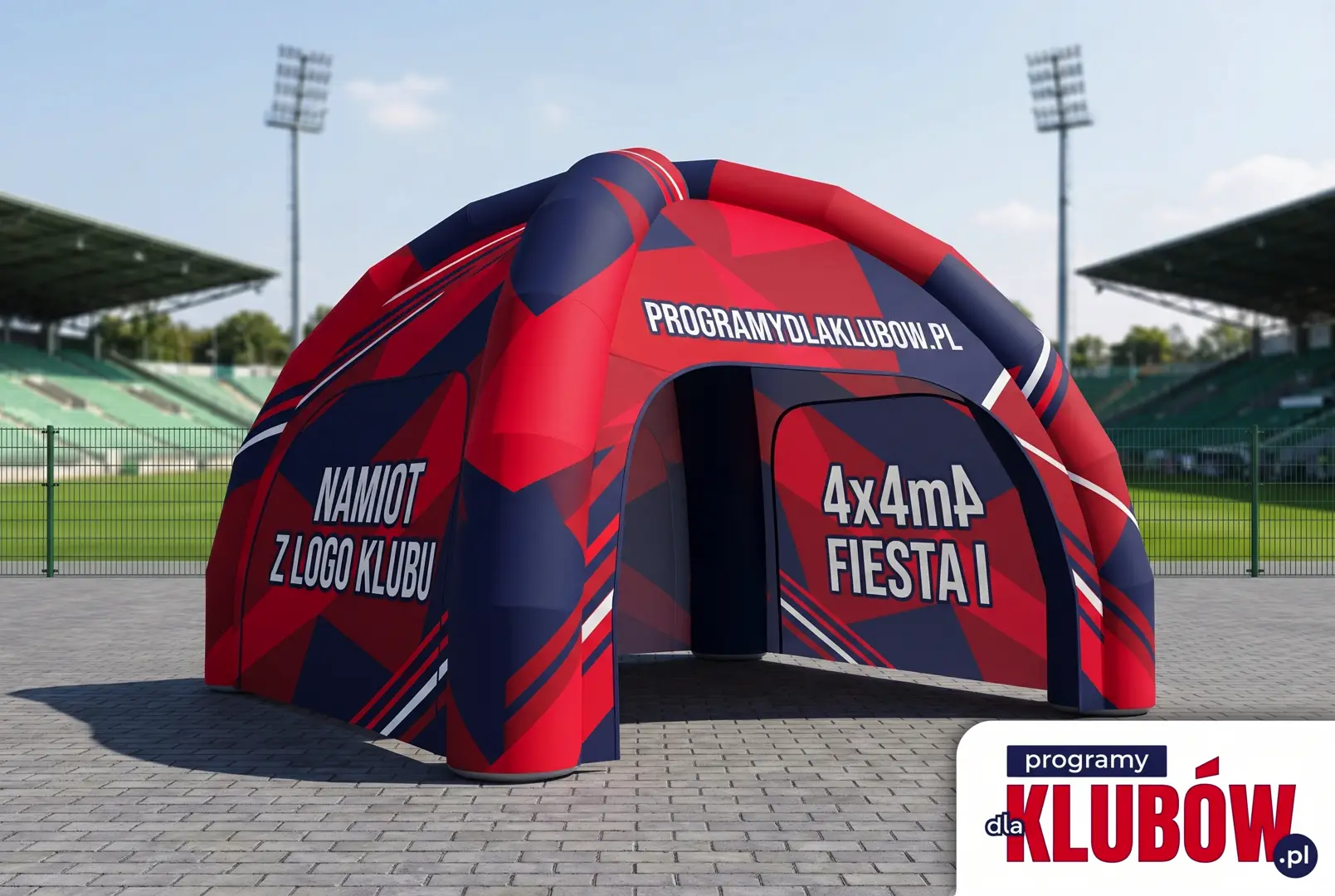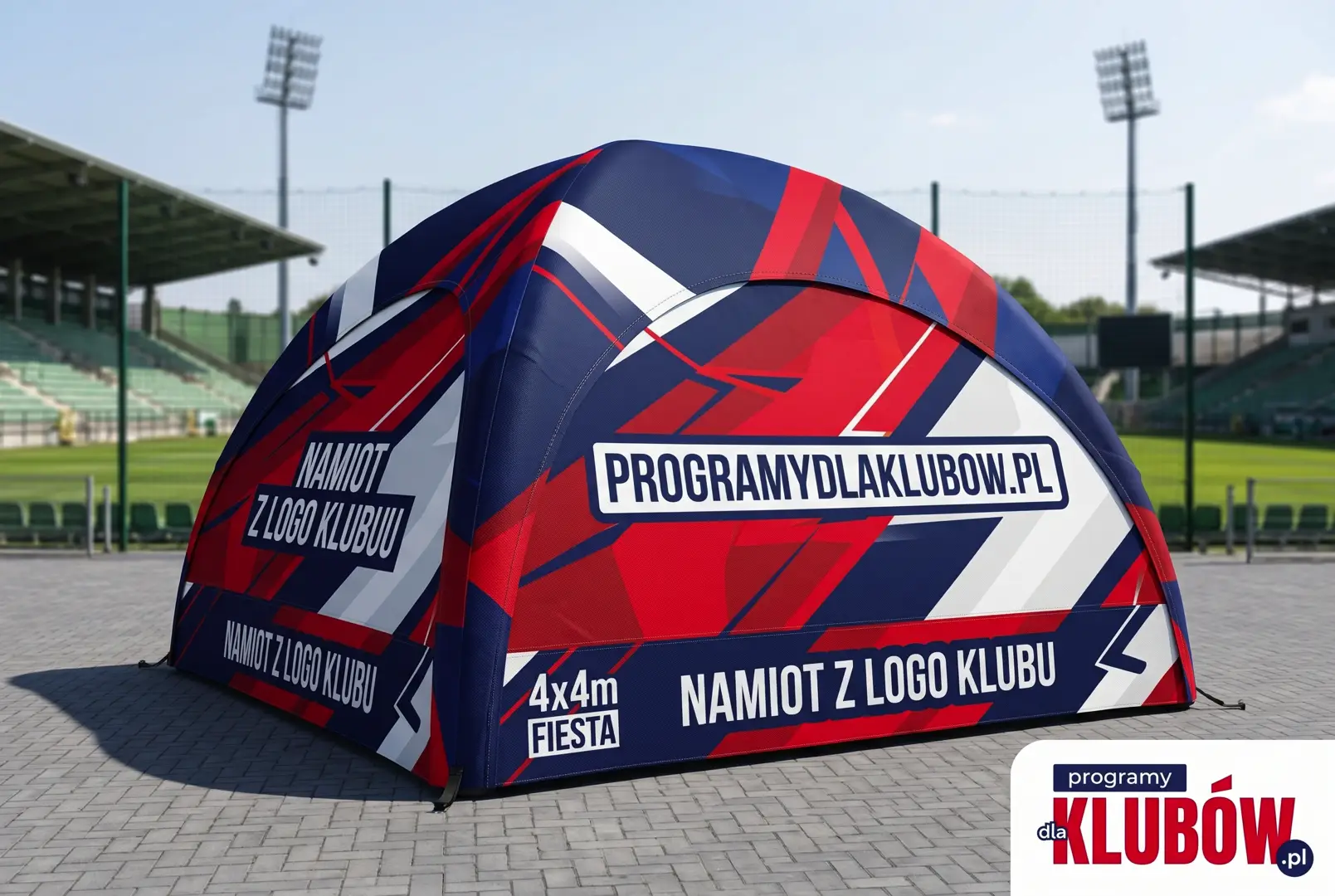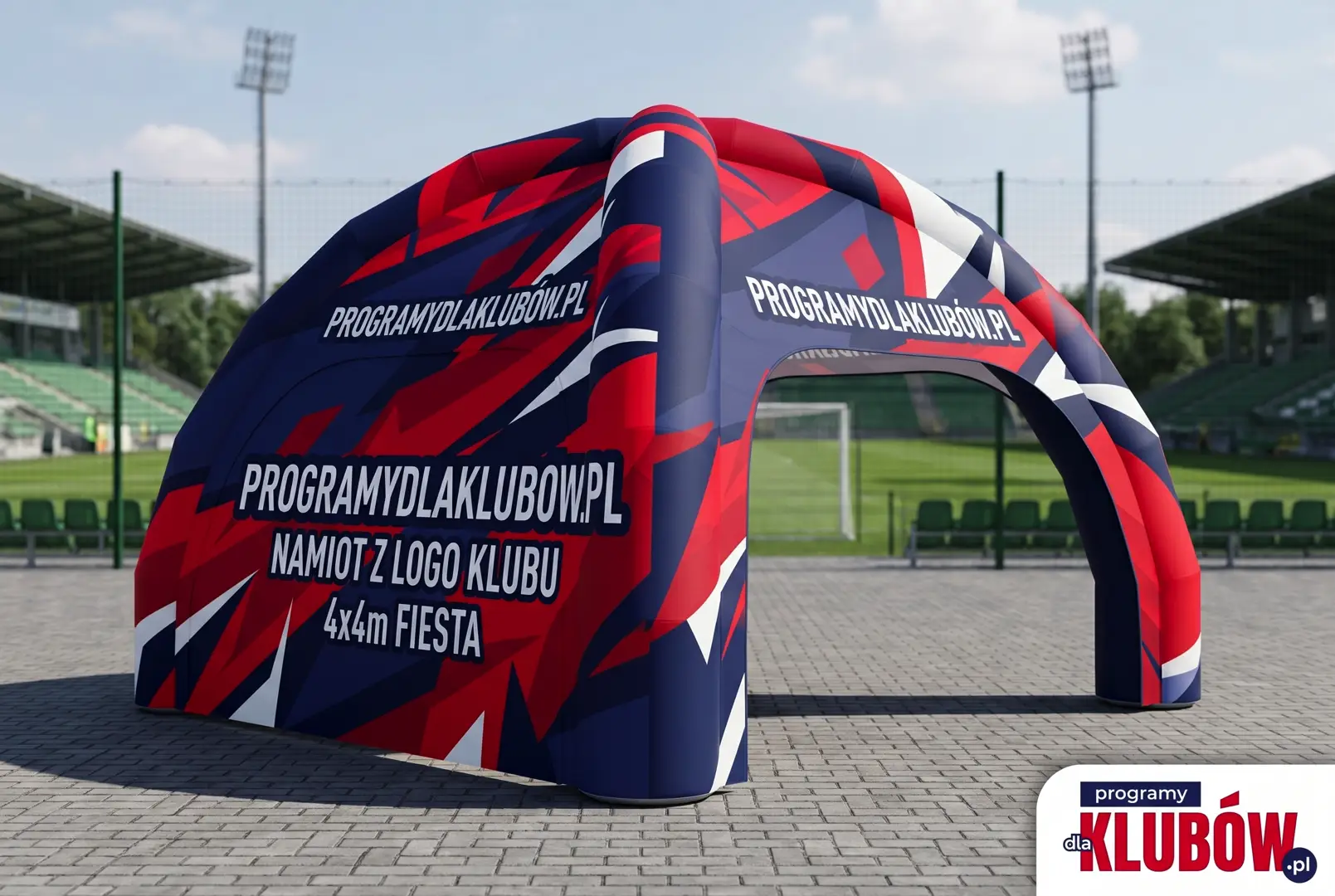 Prześlij nam logo klubu oraz sponsorów. W 48 godzin wyślemy Ci wizualizację 3D - dokładnie tak, jak będzie wyglądał na imprezie sportowej.